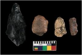 | Description / विवरण | There are n 04 objects; one is comparatively bigger and is having triangle shape, two are having flat base, one is fluted core and is well preserved. |