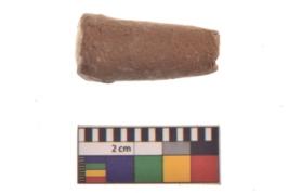 | Description / विवरण | Specimen of a Terracotta Pendant. It is made of red ware, fine fabric, well-fired. It is cylindrical in shape with tapering upwards. The base of this object is flat. |