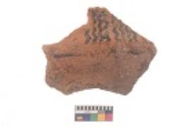 | Description / विवरण | Specimen of black on red ware with black decorative Wavy lines geometric painting. |