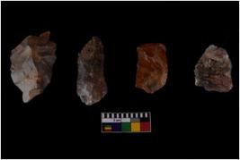 | Description / विवरण | There are n 4 of utilized worked cores. They have sharp edges and dominant scar pattern. Some are tapering at one end while one has a broken tip. |