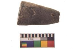 | Description / विवरण | Specimen of a Terracotta Pendant. It is made of red ware, fine fabric, well-fired. It is cylindrical in shape with tapering upwards. The base of this object is flat and the hole for suspension is provided near the top. |