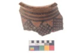 | Description / विवरण | Specimen of black on red ware with black decorative Curves and octahedron lattice design geometric painting. |