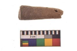 | Description / विवरण | Specimen of a Terracotta Pendant. It is made of red ware, fine fabric, well-fired. It is cylindrical in shape with tapering upwards. The base of this object is flat and the hole for suspension is provided near the top. |