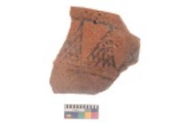 | Description / विवरण | Specimen of black on red ware with black decorative Elongated triangles and parallel lines geometric painting. |