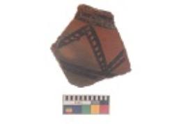| Description / विवरण | Specimen of black on red ware with black decorative Lattice leaf with arch like design geometric painting. |