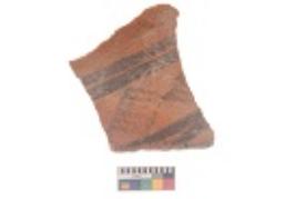 | Description / विवरण | Specimen of black on red ware with black decorative Joint octahedron like design geometric painting. |