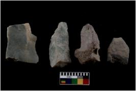 | Description / विवरण | There are n 04 Flake tool; There are multidirectional irregular scar pattern on them. Some of them are tapering at one end |