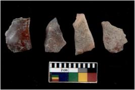 | Description / विवरण | There are n 4 flakes tool; there are flakes tool with prominent flaking marks. It made up of a short flakes with sides trimmed. |
