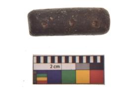 | Description / विवरण | Specimen of a Terracotta Pendant. It is made of red ware, fine fabric, well-fired. It is cylindrical in shape. The base of this object is flat and the three parallel perforation breathwise. |