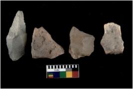 | Description / विवरण | There are n 04 Flake tool; There are multidirectional irregular scar pattern on them. Some of them are tapering at one end |