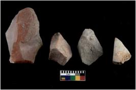 | Description / विवरण | There are n 04 Flake tool; There are multidirectional irregular scar pattern on them. Some of them are tapering at one end |