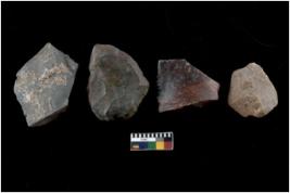 | Description / विवरण | There are n 4 flakes tool; there are flakes tool with prominent flaking marks. It made up of a short flakes with sides trimmed. |