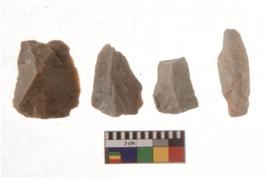 | Description / विवरण | There are n 4 flakes tool; there are flakes tool with prominent flaking marks. It made up of a short flakes with sides trimmed. |