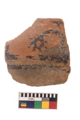 | Description / विवरण | Specimen of black on red ware with black decorative Symbol of sun nature painting. |