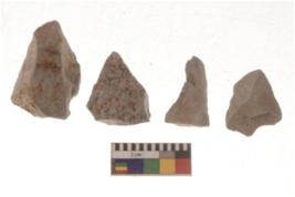 | Description / विवरण | There are n 4 flakes tool; there are flakes tool with prominent flaking marks. It made up of a short flakes with sides trimmed. |