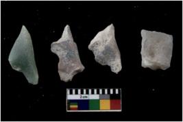 | Description / विवरण | There are n 04 Flake tool; There are multidirectional irregular scar pattern on them. Some of them are tapering at one end |