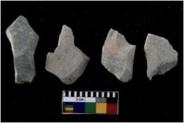 | Description / विवरण | There are n 4 flakes tool; there are flakes tool with prominent flaking marks. It made up of a large flakes with sides trimmed. |