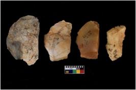 | Description / विवरण | There are n 4 cores; there are multidirectional irregular scar pattern on them. The reverse bulb and platform can be seen. |