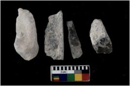 | Description / विवरण | There are n 04 Flake tool; There are multidirectional irregular scar pattern on them. Some of them are tapering at one end |