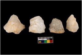 | Description / विवरण | There are n 4 of intact utilized worked cores; some of them have bulge of percussion and some are flat. |