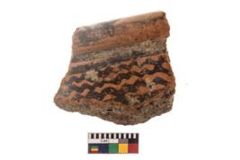 | Description / विवरण | Specimen of black on red ware with black decorative Wavy lines geometric painting. |