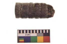 | Description / विवरण | Specimen of a Terracotta handmade bead. It is made of black ware with cylindrical in shape,The base of this object is flat and the hole for suspension is provided near the top. |