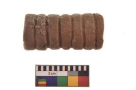 | Description / विवरण | Specimen of a Terracotta handmade bead. It is made of black ware with cylindrical in shape,The base of this object is flat and the hole for suspension is provided near the top. |