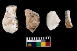 | Description / विवरण | There are n 04 worked utilised cores; among them all are having ridges made out of removing blades. One of them is pointed. |