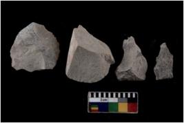| Description / विवरण | There are n 04 Flake tool; There are multidirectional irregular scar pattern on them. Some of them are tapering at one end |