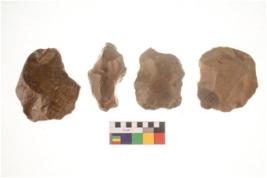 | Description / विवरण | There are n 4 flakes tool; there are large flakes with sides trimmed, Marks of secondary flaking are present on the both the faces.The dorsal is relatively flat. |