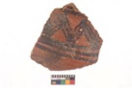 | Description / विवरण | Specimen of black on red ware with black decorative Parallel horizontal lines and arch like intersected design geometric painting. |
