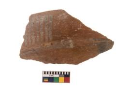 | Description / विवरण | Specimen of black on red ware with black decorative Wavy lines geometric painting. |