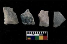 | Description / विवरण | There are n 04 Flake tool; There are multidirectional irregular scar pattern on them. Some of them are tapering at one end |