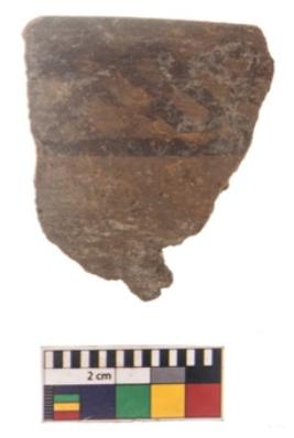 | Description / विवरण | Specimen of black on red ware with black decorative Lattice design geometric painting. |