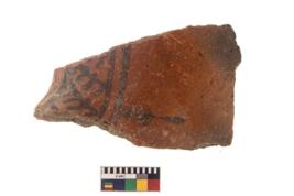 | Description / विवरण | Specimen of black on red ware with black decorative Leaf like design nature painting. |