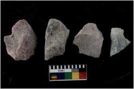 | Description / विवरण | There are n 4 flakes tool; there are flakes tool with prominent flaking marks. It made up of a large flakes with sides trimmed. |