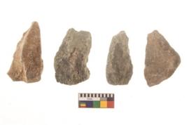 | Description / विवरण | There are n 4 flakes tool; there are large flakes with sides trimmed, Marks of secondary flaking are present on the both the faces.The dorsal is relatively flat. |