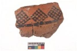 | Description / विवरण | Specimen of black on red ware with black decorative Octahedron like lattice design geometric painting. |