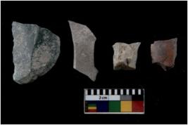 | Description / विवरण | There are n 4 flakes tool; there are flakes tool with prominent flaking marks. It made up of a large flakes with sides trimmed. |