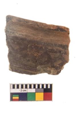 | Description / विवरण | Specimen of black on red ware with black decorative Lattice design geometric painting. |