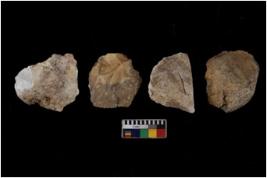 | Description / विवरण | Specimen of core with prominent flaking marks. It made up of a short flakes with sides trimmed. |