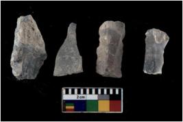 | Description / विवरण | There are n 4 flakes tool; there are flakes tool with prominent flaking marks. It made up of a large flakes with sides trimmed. |