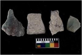 | Description / विवरण | There are n 4 flakes tool; there are flakes tool with prominent flaking marks. It made up of a large flakes with sides trimmed. |