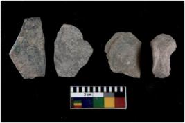 | Description / विवरण | There are n 4 flakes tool; there are flakes tool with prominent flaking marks. It made up of a large flakes with sides trimmed. |