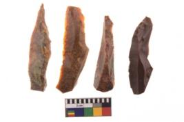 | Description / विवरण | There are n- 04 objects; among them three have chalcedony, and one has chert, and two have sharp edges, and two have pen pointed edges. |