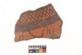 | Description / विवरण | Specimen of black on red ware with black decorative Lattice design geometric painting. |