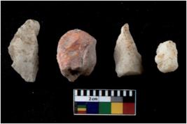 | Description / विवरण | There are n 04 Flake tool; There are multidirectional irregular scar pattern on them. Some of them are tapering at one end |