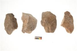| Description / विवरण | There are n 4 flakes tool; there are large flakes with sides trimmed, Marks of secondary flaking are present on the both the faces.The dorsal is relatively flat. |