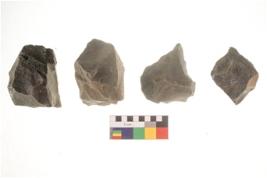 | Description / विवरण | There are n 4 flakes tool; there are large flakes with sides trimmed, Marks of secondary flaking are present on the both the faces.The dorsal is relatively flat. |