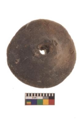 | Description / विवरण | Specimen of terracotta Wheel. It is red ware rounded shape with center perforation. |
